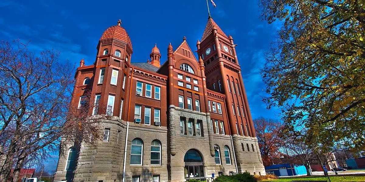 A: The Montgomery County Courthouse was pulled by thirty yoke of oxen on sleds to the Red Oak location in a blizzard. The blizzard was so intense that the courthouse was moved off course, oxen were unhitched and the courthouse was allowed to wander on its own.